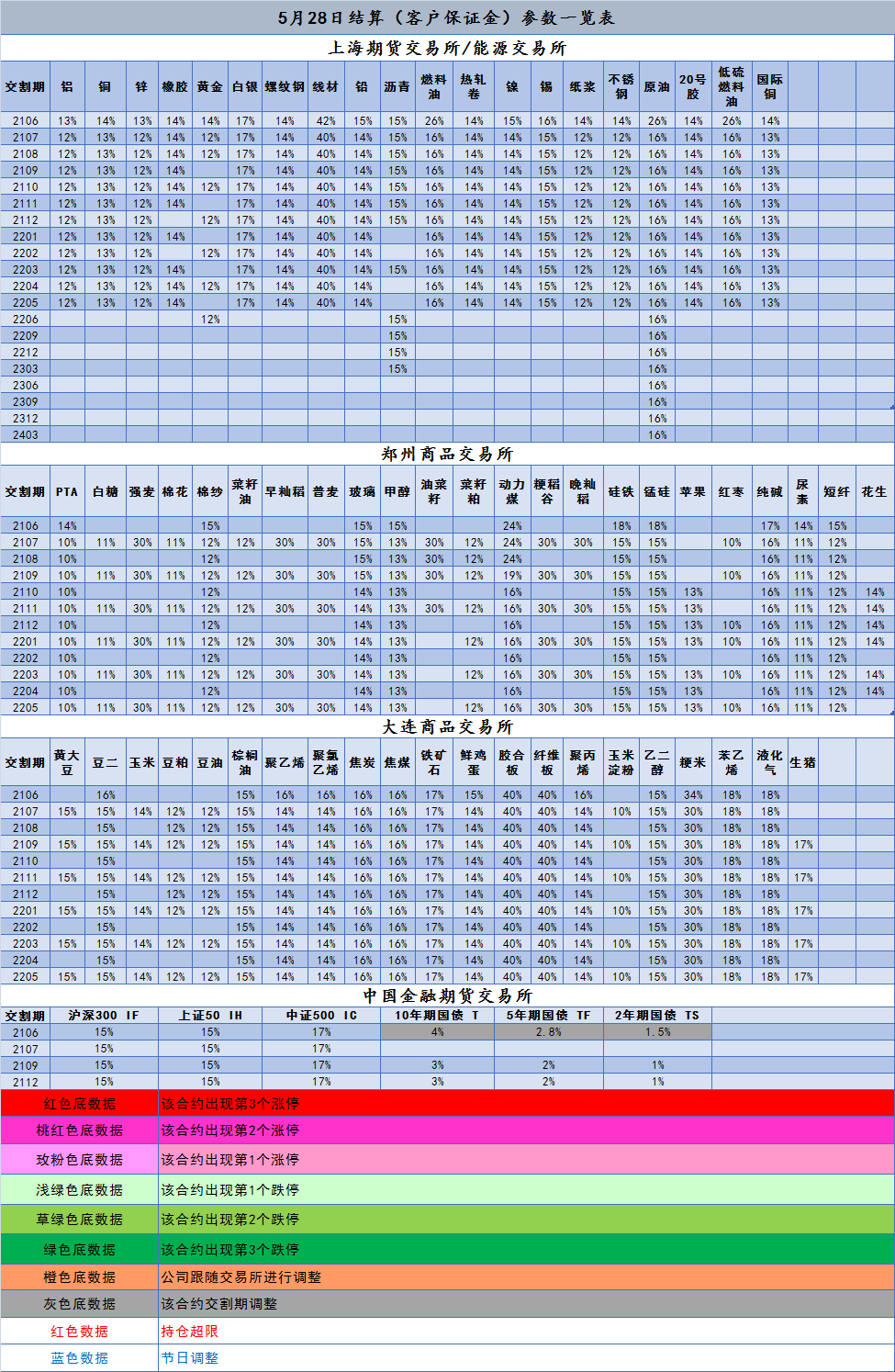 5月28日结算(客户保证金)参数一览表