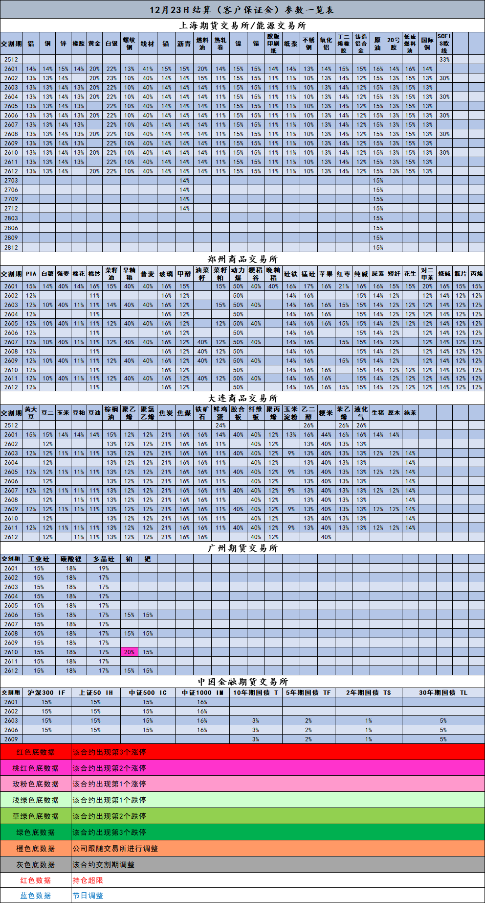 12月23日结算(客户保证金)参数一览表