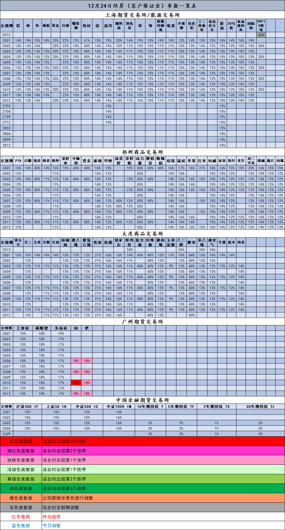 12月24日结算(客户保证金)参数一览表