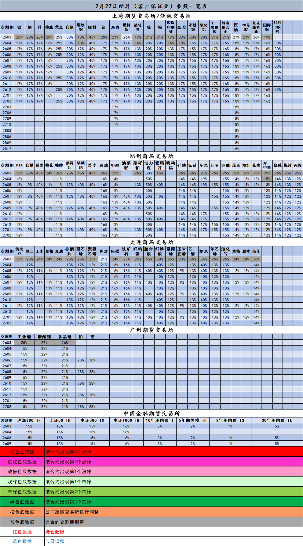 2月27日结算(客户保证金)参数一览表