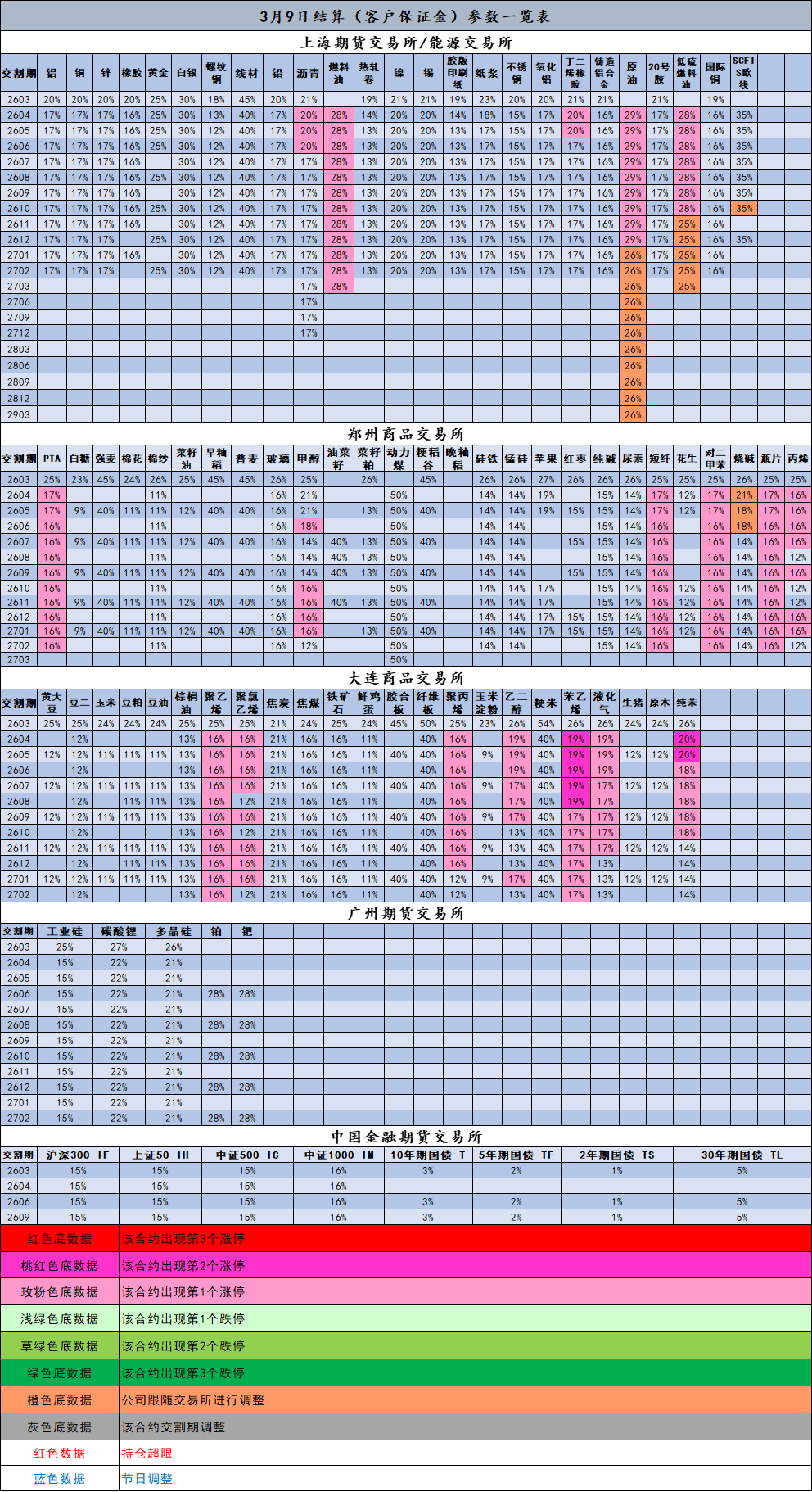 3月9日结算(客户保证金)参数一览表