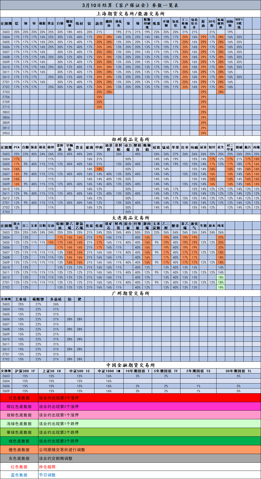 3月10日结算(客户保证金)参数一览表