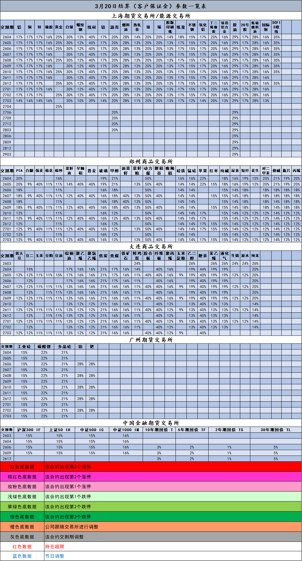 3月20日结算(客户保证金)参数一览表