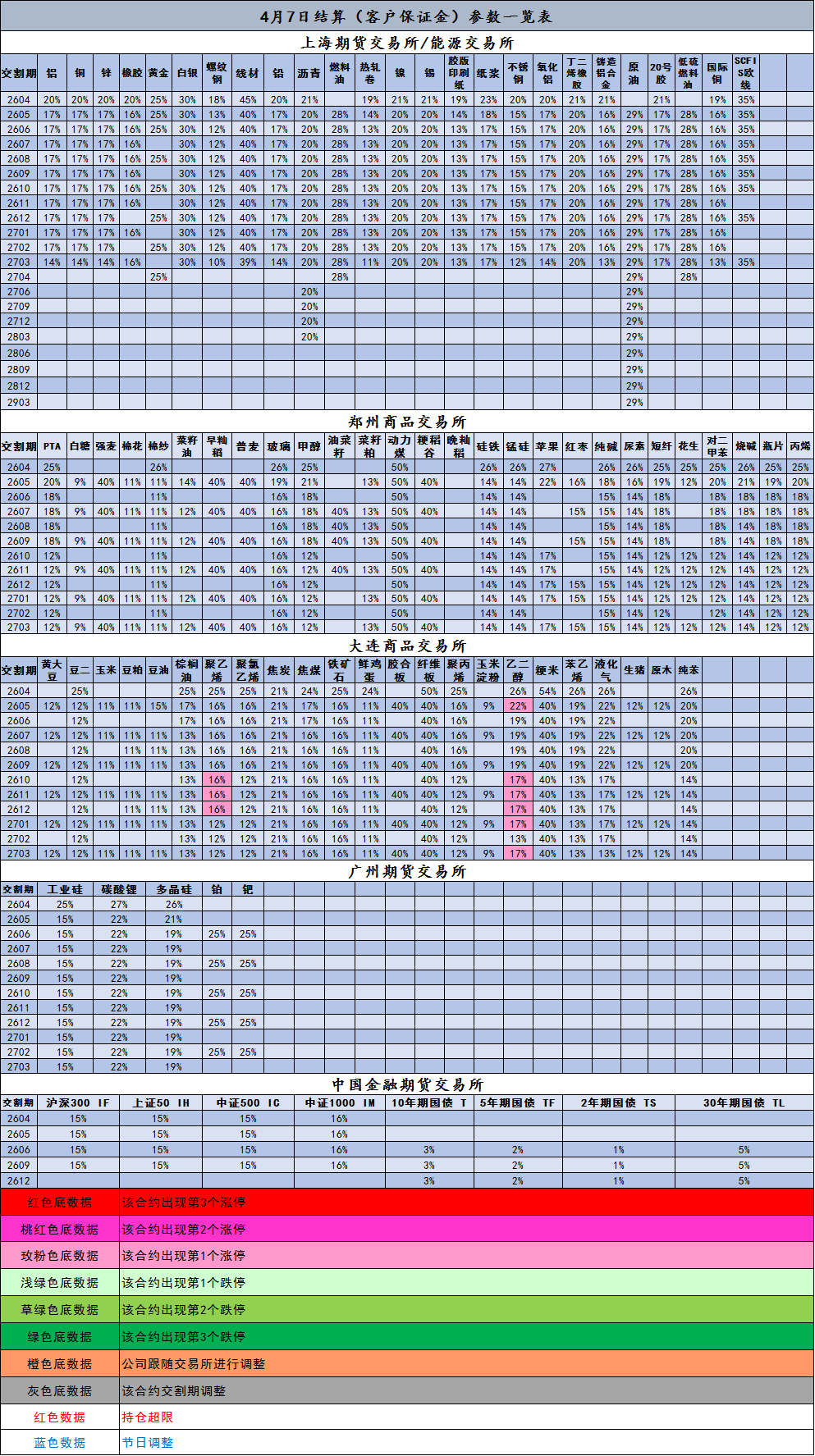 4月7日结算(客户保证金)参数一览表